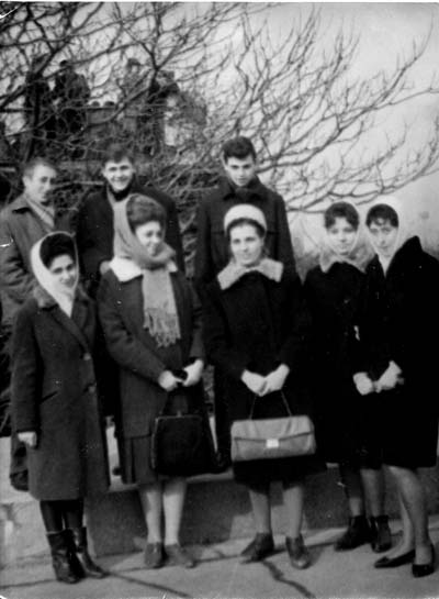 "Это мой класс собирал металл (сентябрь-октябрь 1962 года, тогда 9А. Датировка абсолютно точная, т.к. с палочкой после травмы Витя Лотарь - на верхнем снимке. Справа от него у стены школы - Евгения Шимкевич ( ныне Антонюк). Налево - на переднем плане - Света Потиенок со спинкой кровати. Далее - спиной - Наташа Дашниц. Лариса Хромых - тоже со спинкой кровати. Валерий Петрович Корецкий (самый высокий на верхних двух снимках). Между ним и Ларой - виден Юра Биленко (его нет > 30 лет). Hа среднем снимке: Наташа Дашниц (крайняя слева ), Света Потиенок(там же - крайняя справа). Вокруг весов - по часовой стрелке, начиная от Корецкого: Миша Шитов, Валера Глуходедов, Вова Трофимов. Спиной стоит Вереникин. Слева от него - спиной - Лара Хромых. На нижнем нимке спереди слева - Юлий Лев, cзади него слева - Рома Вайсблат, cзади справа - Саша Вакуров. Кто справа спереди - не знаю." Два дополнения: "1) пропустил Людмилу Иванову (тогдашняя фамилия) - она на среднем снимке на фоне левого окна в профиль. 2)Там же, вторая справа Люда Теплицкая и виднеется Ольга Илющенко 3) на нижнем - неопознанный справа похож на Шорохова" Спасибо, Миша! Дополнение Наташи Дашниц: