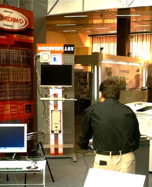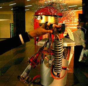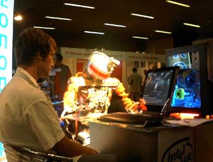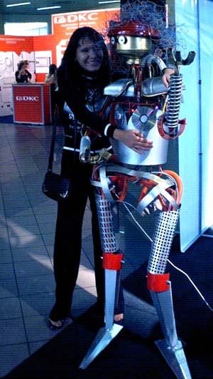 Сотрудники компаний, "работающие" на стендах, готовы общаться с кем угодно: с роботами, с компьютерами, сами с собой, но не с посетителями... Стенд компании "Неолоджик" был обставлен со всех сторон отличными, с большим вкусом сделанными, муляжами роботов. Он украшали не только стенд, на котором они были представлены, но и всю выставку. Фамилию скульптора у работников стенда выяснить не удалось. Было сказано только, что он из Белгород-Днестровска. |
