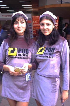 Две симпатичные, приветливые мышки, рекламирующие подмышки.... Сайт, означенный у них на груди , http:// www.podmyshku.com работает! В перспективе из этих мышек можно сделать прекрасные коврики... А пока удалось только подергать их за хвостики. |